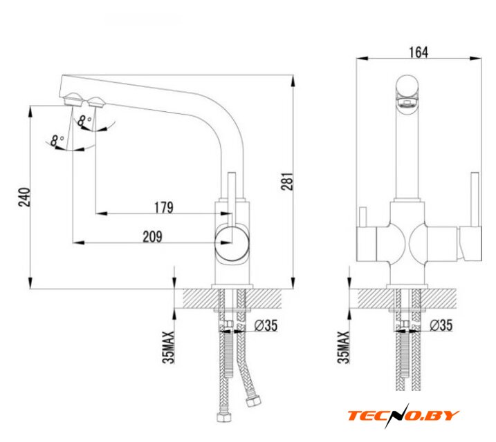 однорычажный смеситель для кухни, монтаж на раковину или столешницу