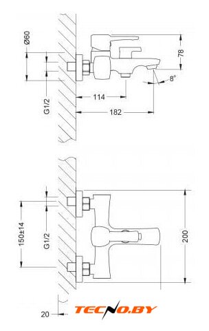 кнопочный смеситель для умывальника, монтаж на раковину или столешницу