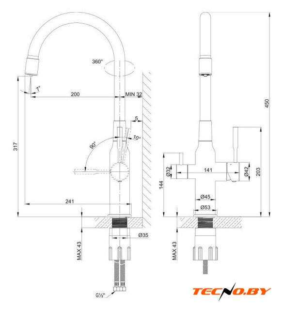 однорычажный смеситель для кухни, монтаж на раковину или столешницу