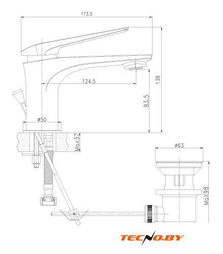 однорычажный смеситель для мойки, монтаж на раковину или столешницу