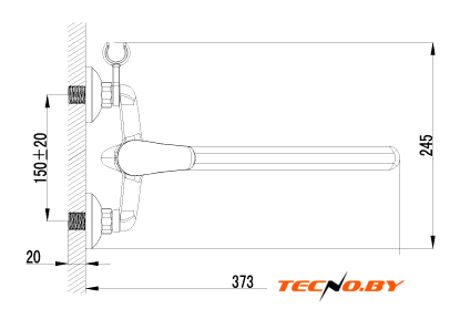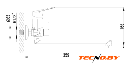однорычажный смеситель для ванны, монтаж на стену