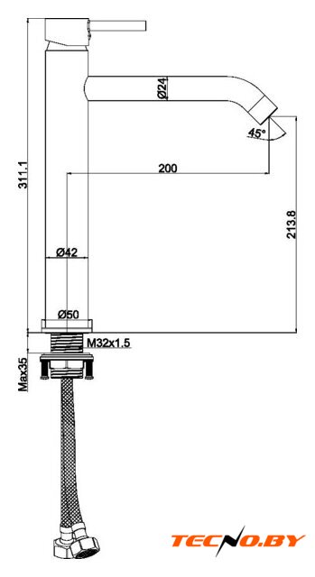 однорычажный смеситель для умывальника, монтаж на раковину или столешницу
