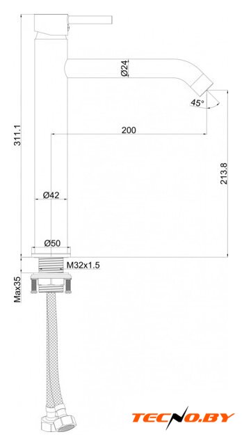 однорычажный смеситель для отдельностоящего умывальника, монтаж на раковину или столешницу