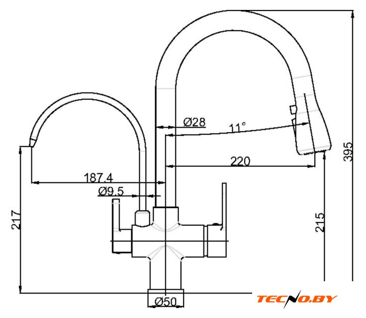 | Длина (вылет) излива | 187.4 — 220 мм |