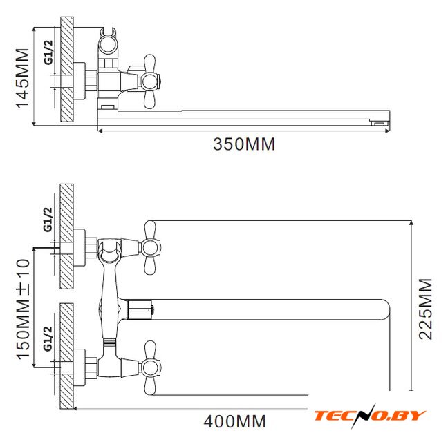однорычажный смеситель для ванны и душа, монтаж на стену