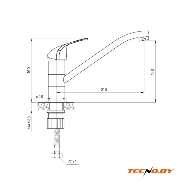 однорычажный смеситель для кухни, монтаж на раковину или столешницу