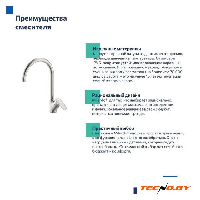 однорычажный смеситель для мойки, монтаж на раковину или столешницу