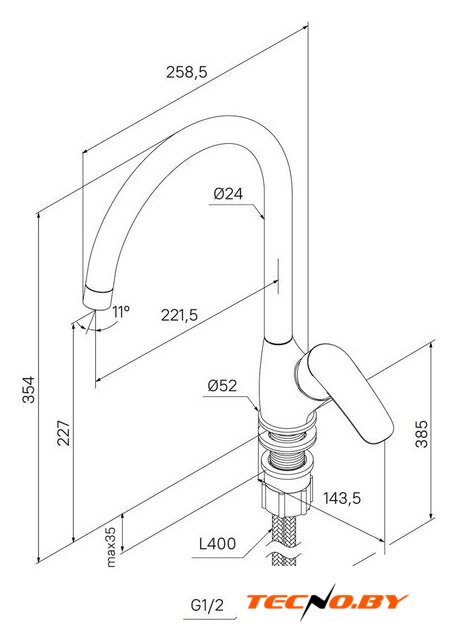 | Длина (вылет) излива | 221.5 мм |