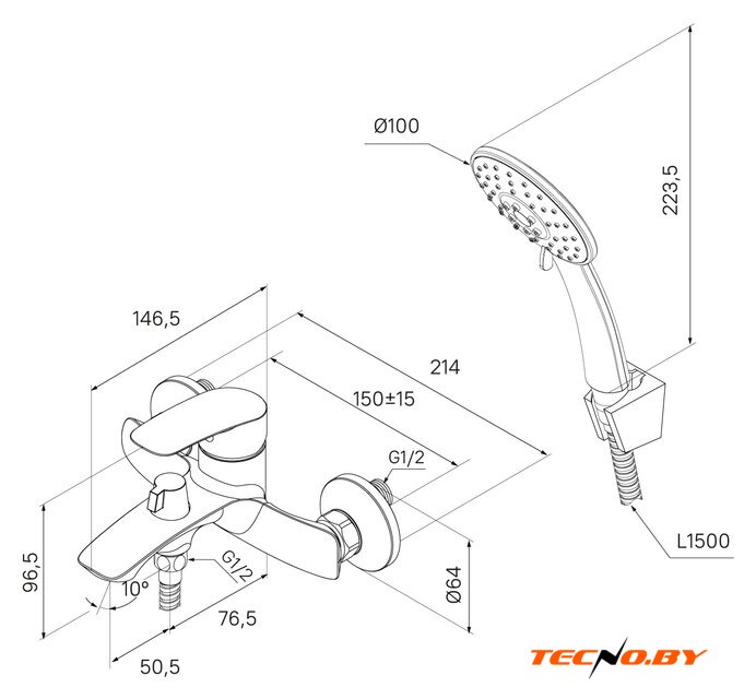 однорычажный смеситель для ванны и душа, монтаж на стену