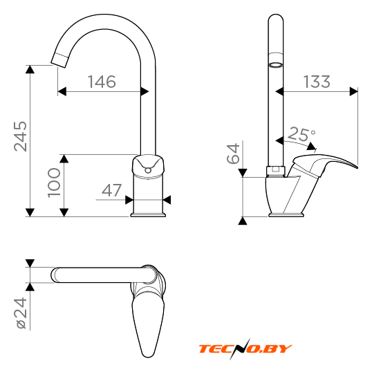 однорычажный смеситель для кухни, монтаж на раковину или столешницу