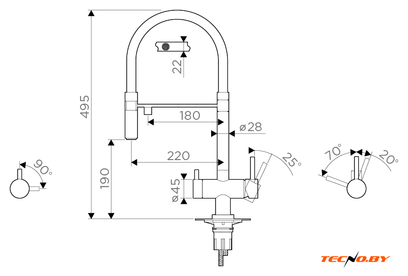 однорычажный смеситель для кухни, монтаж на раковину или столешницу
