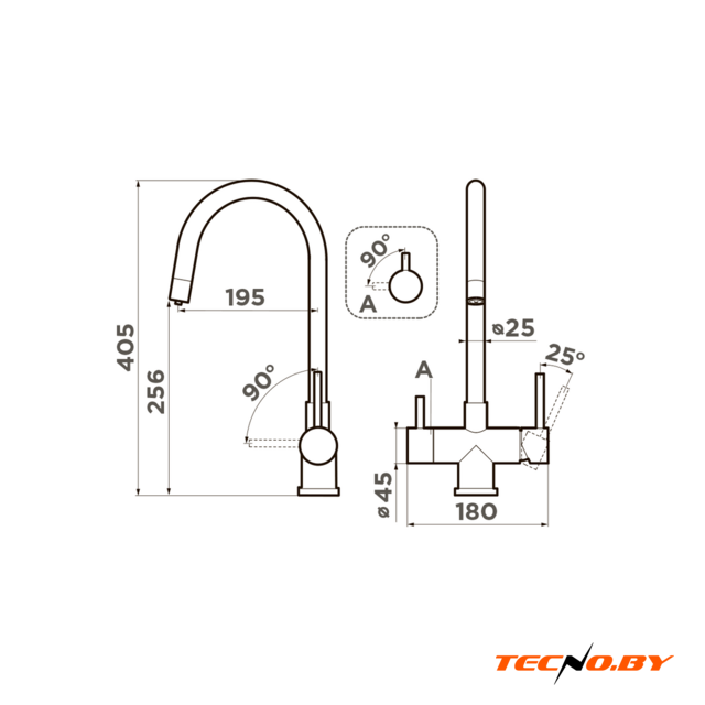однорычажный смеситель для кухни, монтаж на раковину или столешницу