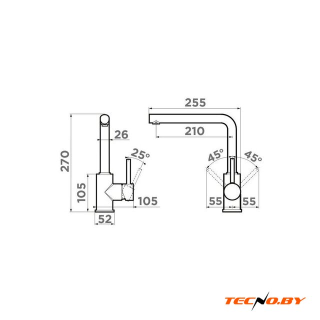 однорычажный смеситель для кухни, монтаж на раковину или столешницу