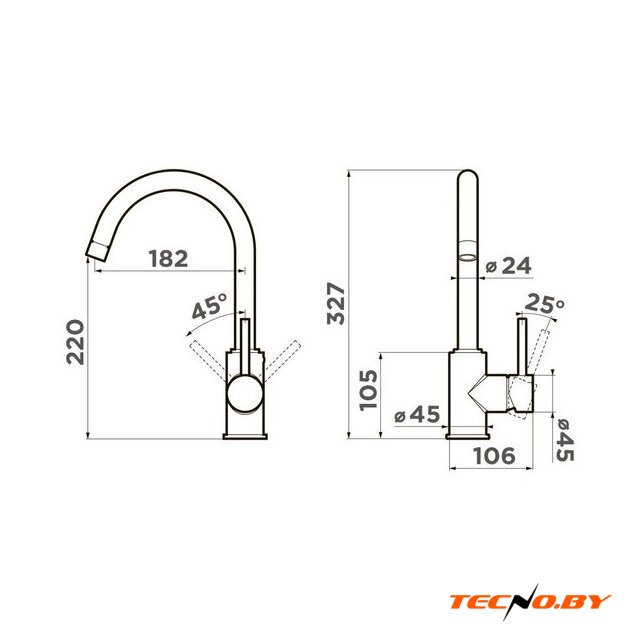 однорычажный смеситель для кухни, монтаж на раковину или столешницу