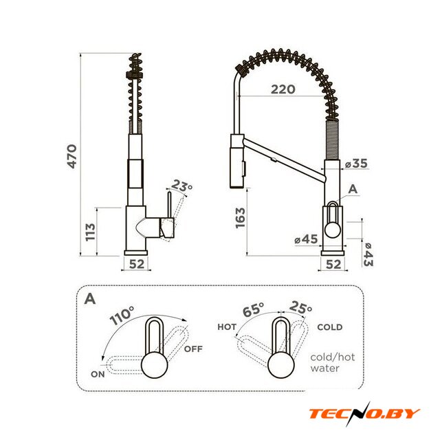 однорычажный смеситель для кухни, монтаж на раковину или столешницу