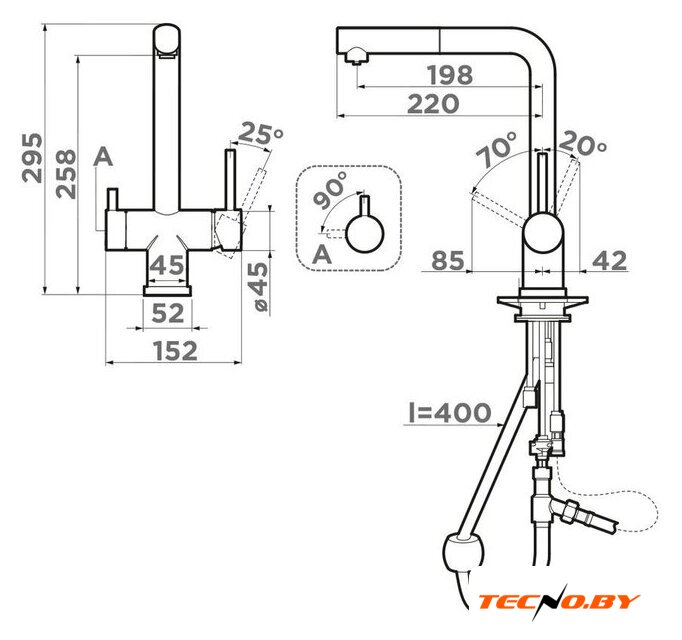 | Высота излива | 258 мм |