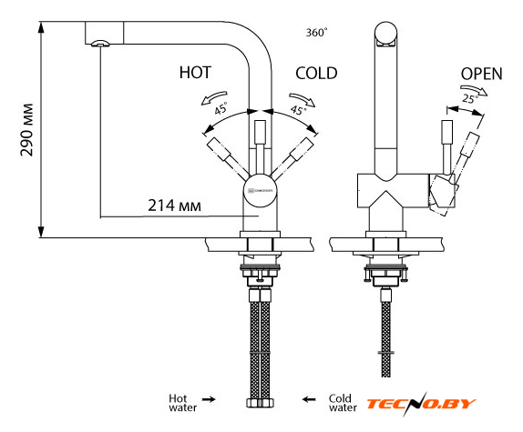 однорычажный смеситель для кухни, монтаж на раковину или столешницу
