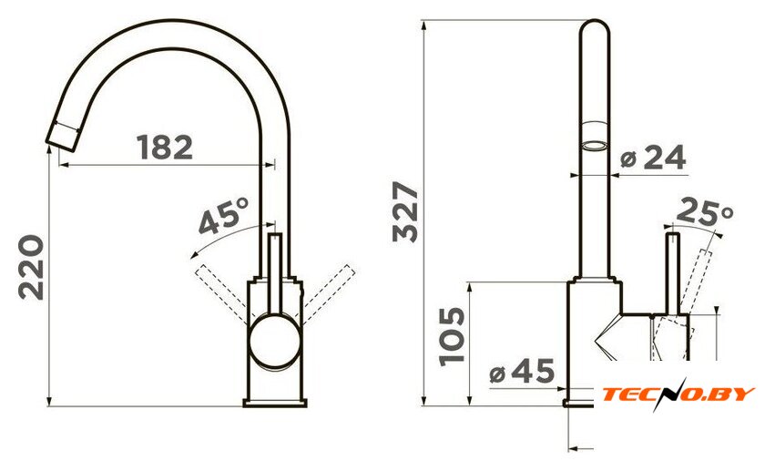 однорычажный смеситель для мойки, монтаж на раковину или столешницу