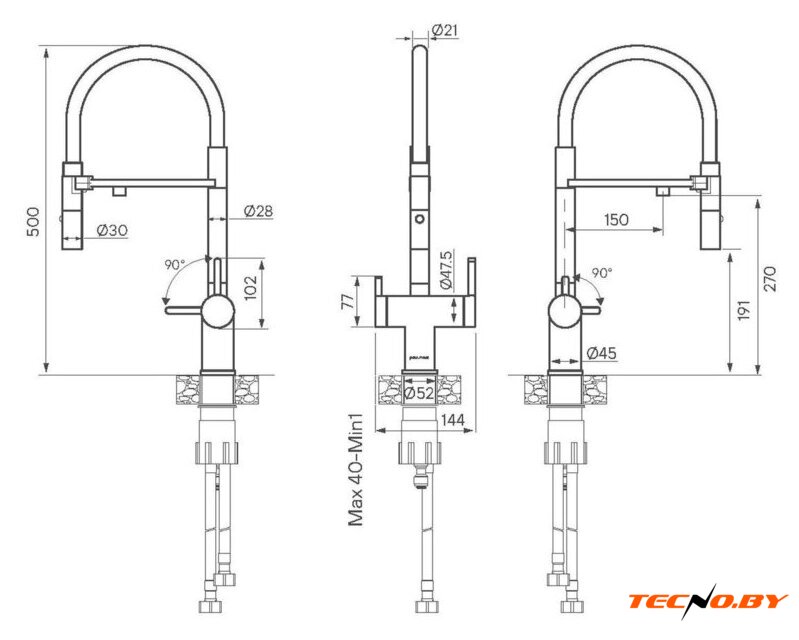 | Выдвижной/гибкий излив | c душевой лейкой |