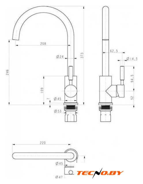 однорычажный смеситель для кухни, монтаж на раковину или столешницу