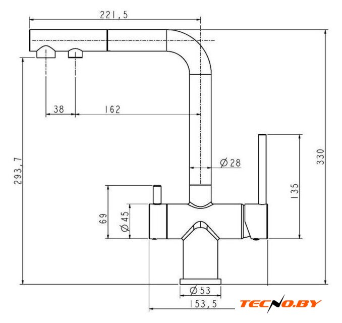 однорычажный смеситель для кухни, монтаж на раковину или столешницу