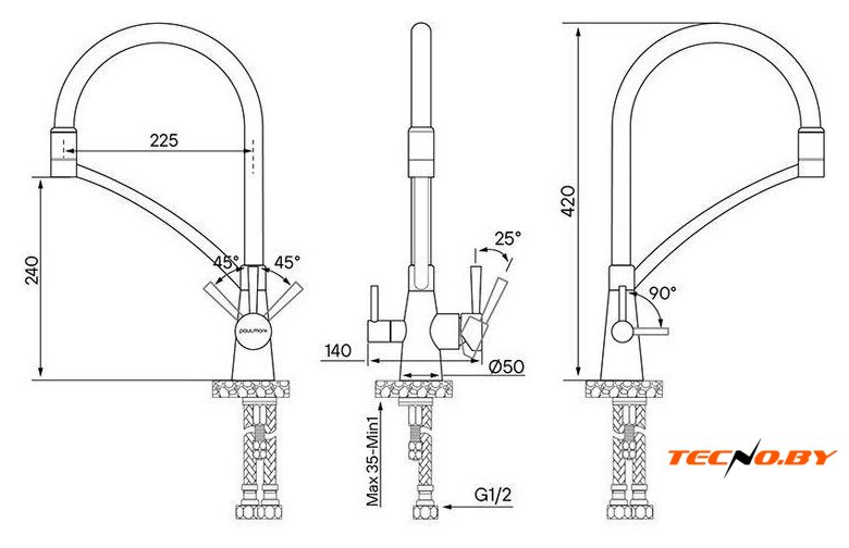 однорычажный смеситель для кухни, монтаж на раковину или столешницу