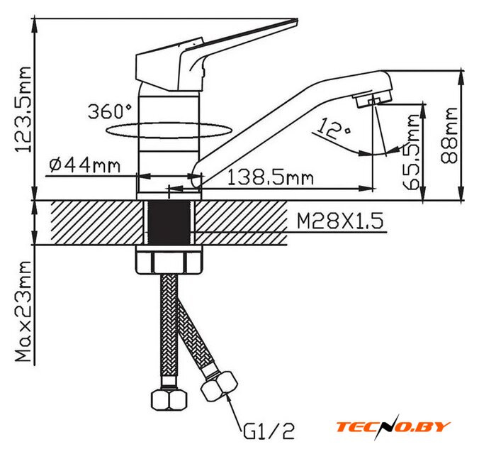 однорычажный смеситель для кухни, монтаж на раковину или столешницу