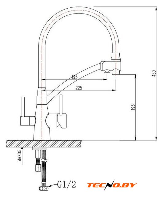 однорычажный смеситель для кухни, монтаж на раковину или столешницу