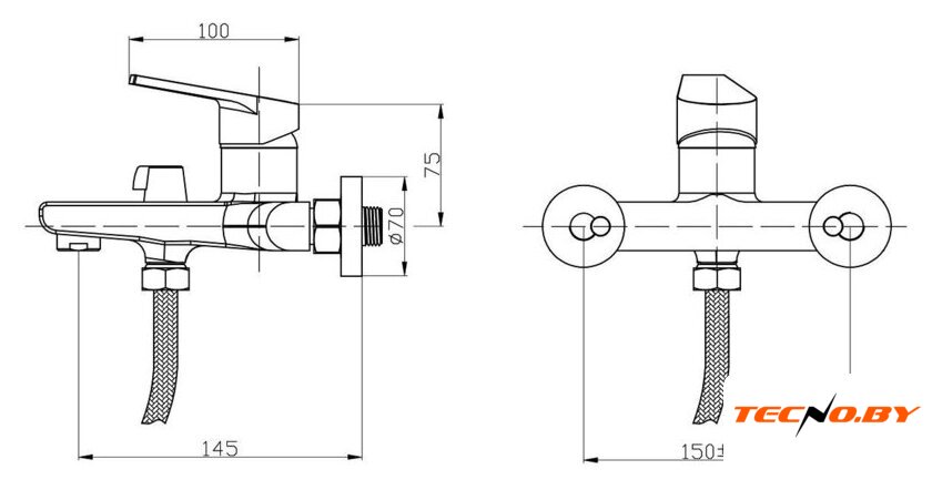 однорычажный смеситель для ванны и душа, монтаж на стену