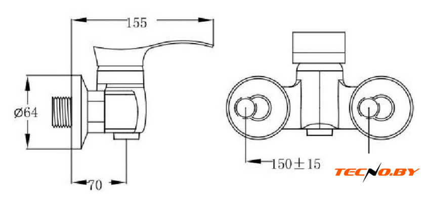 однорычажный смеситель для ванны и душа, монтаж на стену