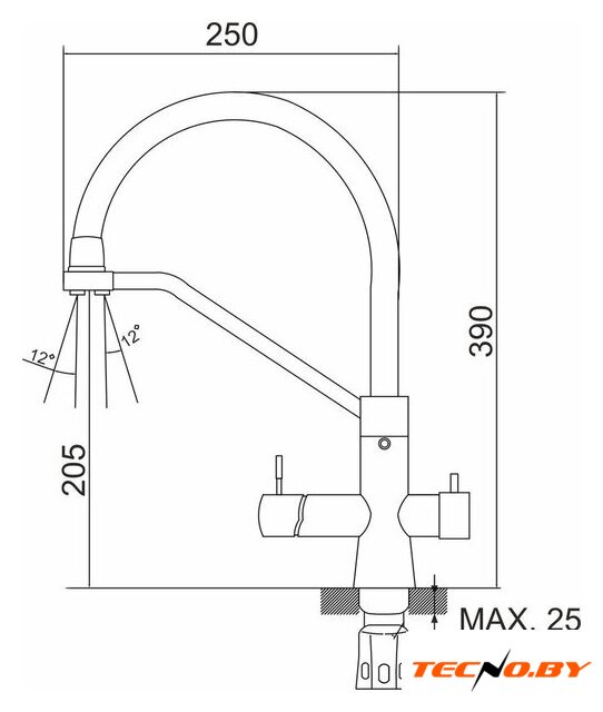 однорычажный смеситель для кухни, монтаж на раковину или столешницу