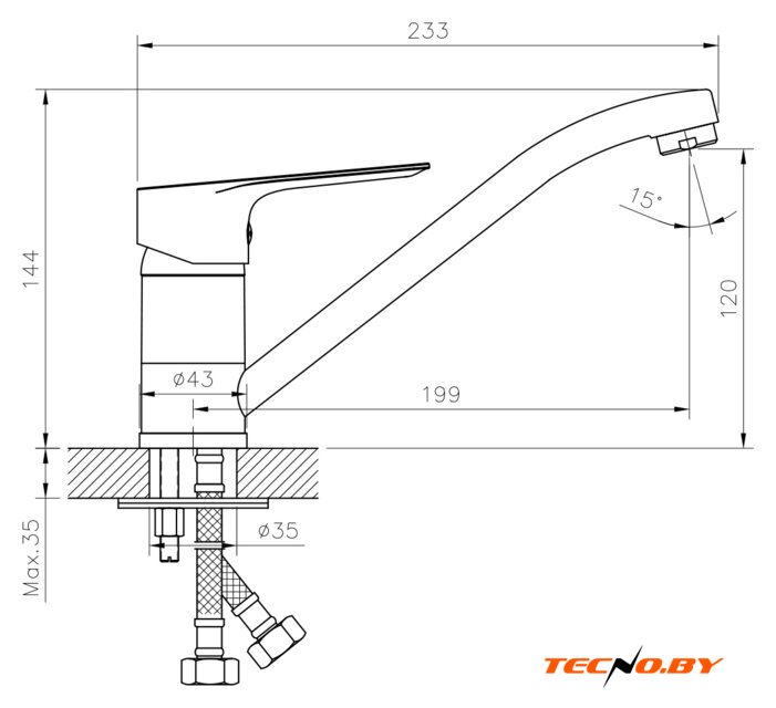 однорычажный смеситель для кухни, монтаж на раковину или столешницу