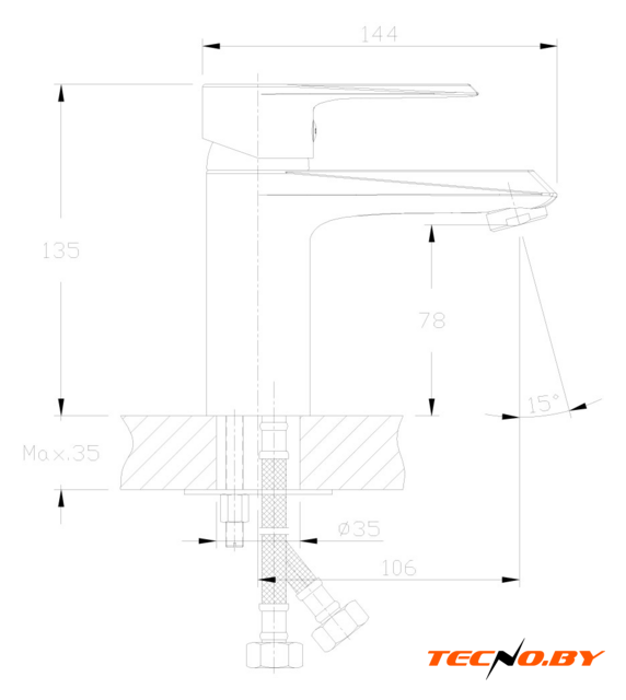 однорычажный смеситель для умывальника, монтаж на раковину или столешницу