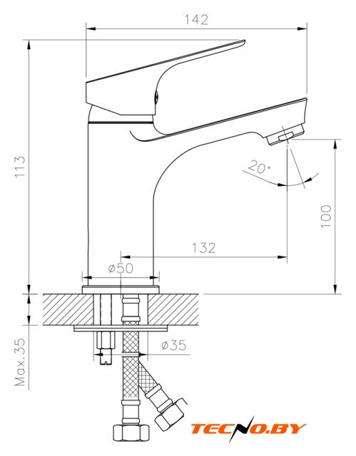 однорычажный смеситель для умывальника, монтаж на раковину или столешницу