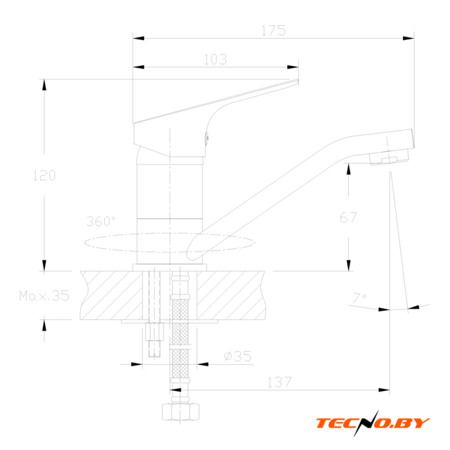 однорычажный смеситель для кухни, монтаж на раковину или столешницу