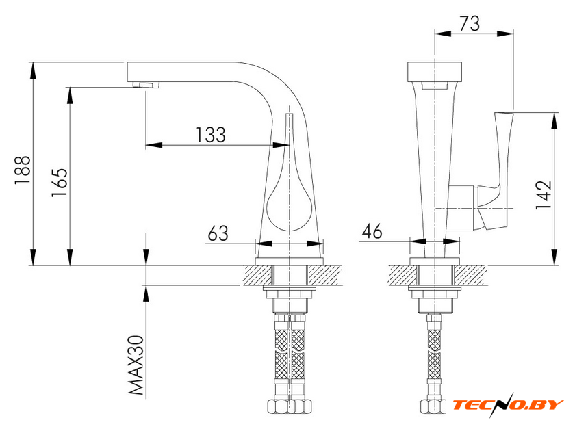 однорычажный смеситель для мойки, монтаж на раковину или столешницу