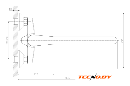 однорычажный смеситель для ванны, монтаж на стену
