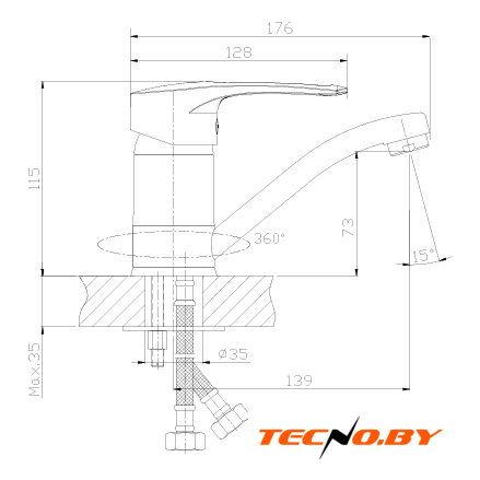 однорычажный смеситель для умывальника, монтаж на раковину или столешницу