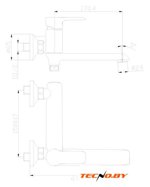 однорычажный смеситель для ванны и душа, монтаж на стену