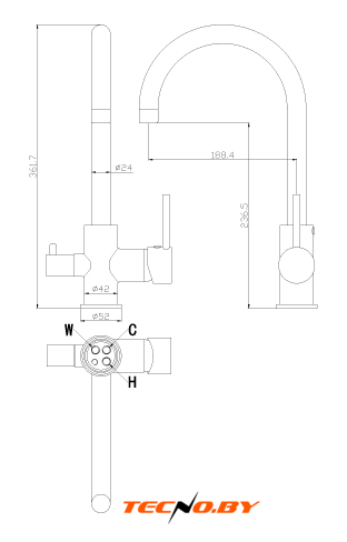 однорычажный смеситель для мойки, монтаж на раковину или столешницу
