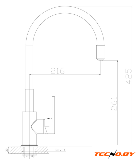 однорычажный смеситель для кухни, монтаж на раковину или столешницу