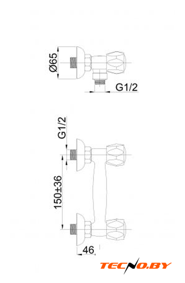двухвентильный смеситель для ванны и душа, монтаж на стену