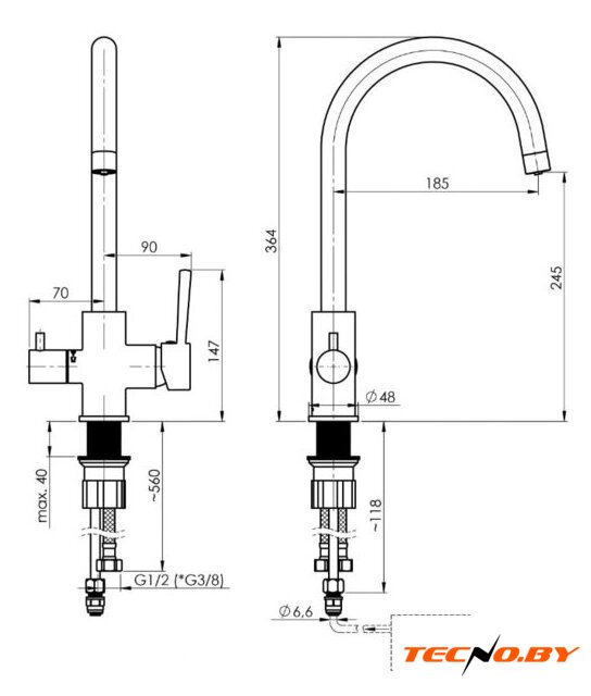 однорычажный смеситель для кухни, монтаж на раковину или столешницу