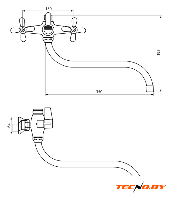двухвентильный смеситель для ванны и душа, монтаж на стену