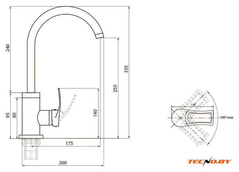однорычажный смеситель для кухни, монтаж на раковину или столешницу