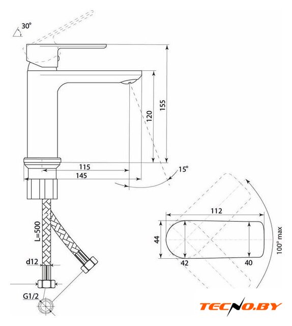 | Поворотный излив | 100 ° |
