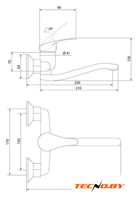 однорычажный смеситель для ванны и душа, монтаж на стену