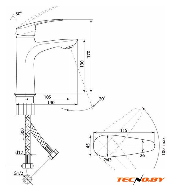 | Поворотный излив | 100 ° |