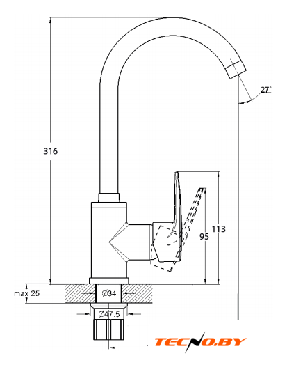 однорычажный смеситель для умывальника, монтаж на раковину или столешницу