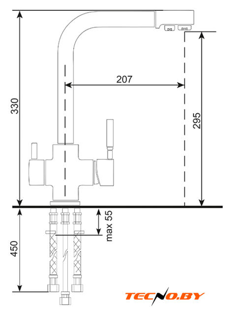 однорычажный смеситель для кухни, монтаж на раковину или столешницу
